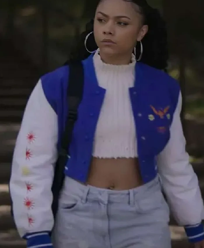 Alix Lapri Power Book II Ghost 04 Blue and White Varsity Jacket For Women