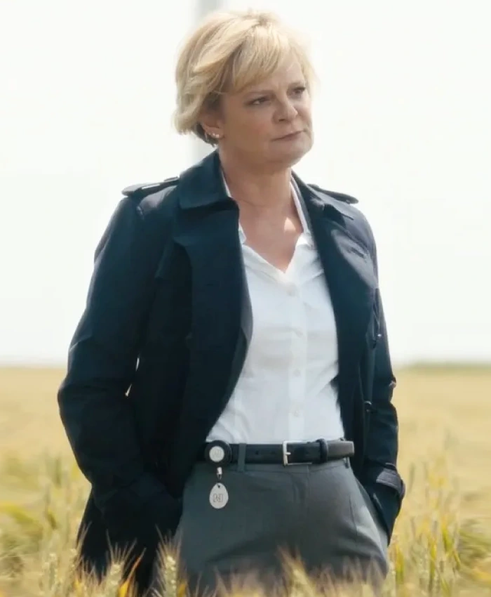 What’s the deal with her black coat? It’s made of material: cotton fabric, tough yet easy to wear—perfect for Martha’s long days on set in 2023. The inner: viscose lining keeps it cozy, like a warm hug after a tough scene. It’s got pockets: two sides, two inner for her phone or a snack, plus sleeves: full length and a collar: lapel style that scream authority. The closure: double breasted buttoned closure locks it tight, and color: black matches her commanding vibe—sharp and unstoppable.