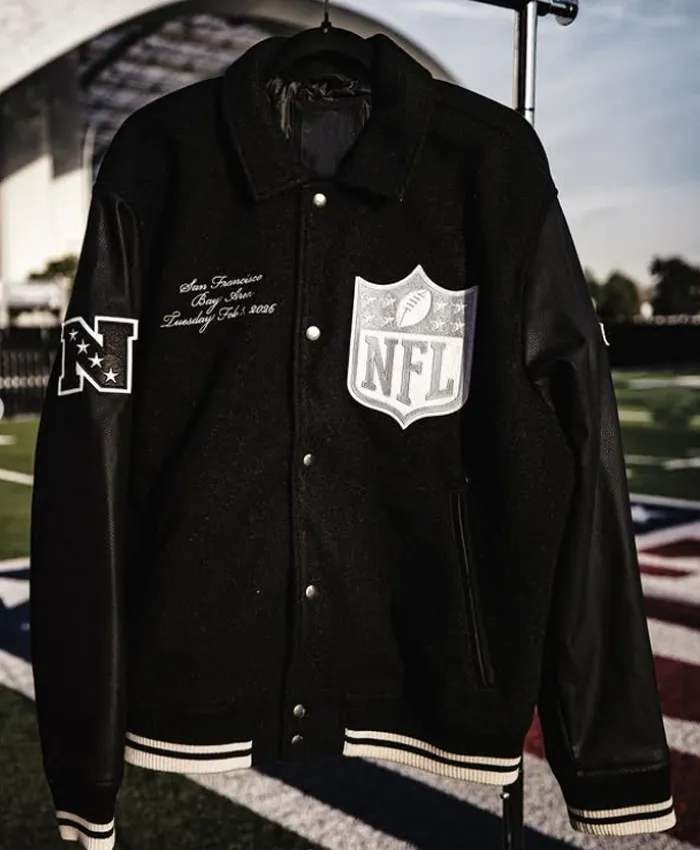 This NFL Pro Bowl 2026 jacket also features full-length sleeves plus ribbed cuffs that help keep warmth inside. Moreover, the classic style collar gives a clean plus timeless touch to the overall design. While a snap tap button closure on the front makes it easy to wear, giving the jacket a structured look.