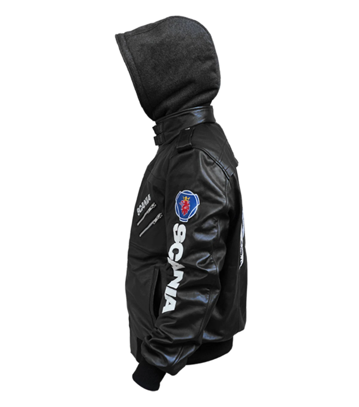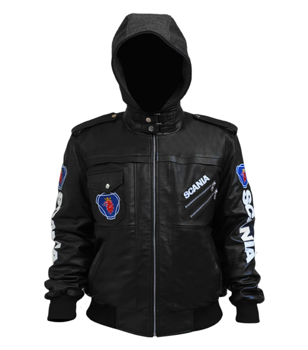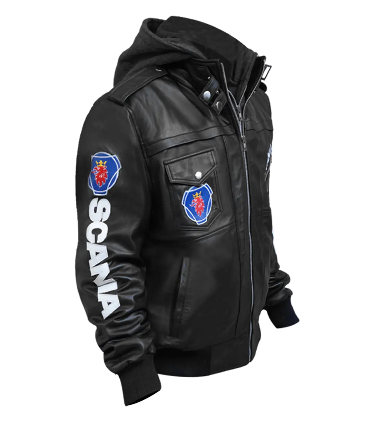 Buy Punisher Black Leather Bomber Hooded Jacket on Sale