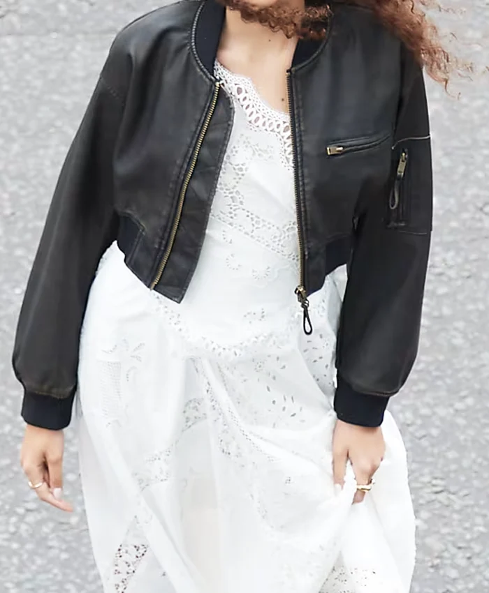 Rosie Jones TV-Series Pushers 2025 Emily Black Cropped Bomber Leather Jacket
