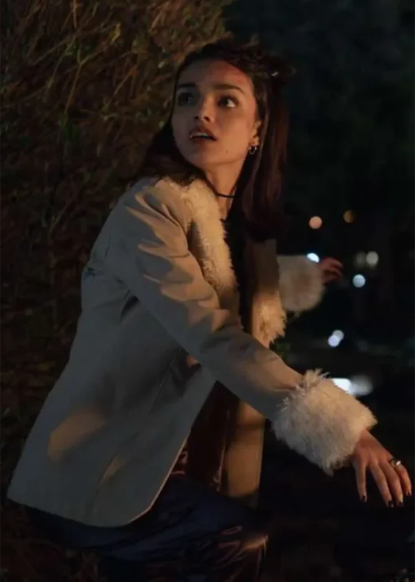 Laura Movie Y2K 2024 Rachel Zegler Beige Shearling Wool Blazer Jacket For Women