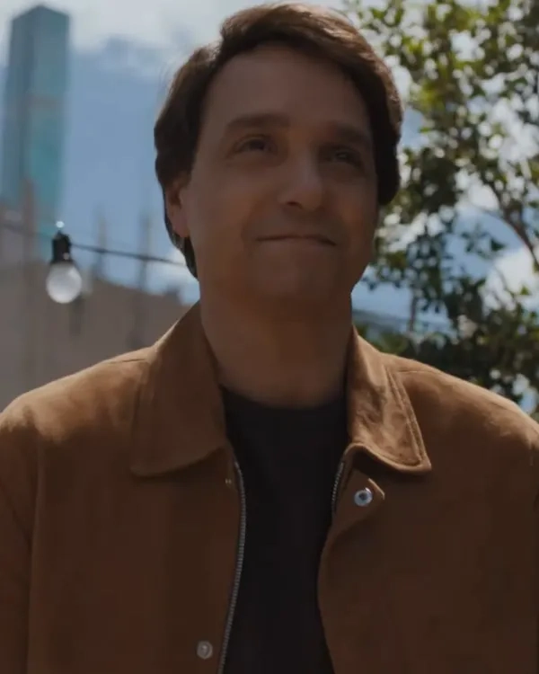In “Karate Kid: Legends,” Daniel LaRusso is seen wearing a distinctive brown suede leather jacket. This jacket features a shirt-style collar, full-length sleeves, and a combination of zipper and snap-tab buttoned closure. It includes two side pockets and two inner pockets, providing both style and practicality. The inner viscose lining ensures comfort, making it suitable for various occasions. The rich brown color adds a touch of classic elegance to the attire.