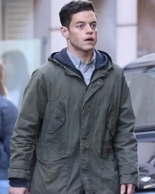 This jacket, inspired by Malek’s on-screen look, is crafted from high-quality cotton fabric, making it both durable and comfortable. The inner viscose lining provides extra warmth and a soft feel, ensuring ease of wear in any season. Designed with a practical hooded collar, full-length sleeves, and open hem cuffs, it offers a relaxed yet stylish fit. The front closure features a secure YKK zipper along with buttons, staying true to the original design. For added functionality, it includes four spacious outside pockets and two inner pockets, giving you plenty of space to carry essentials without compromising style. The rich green color adds a timeless touch, making it a versatile piece for any wardrobe.