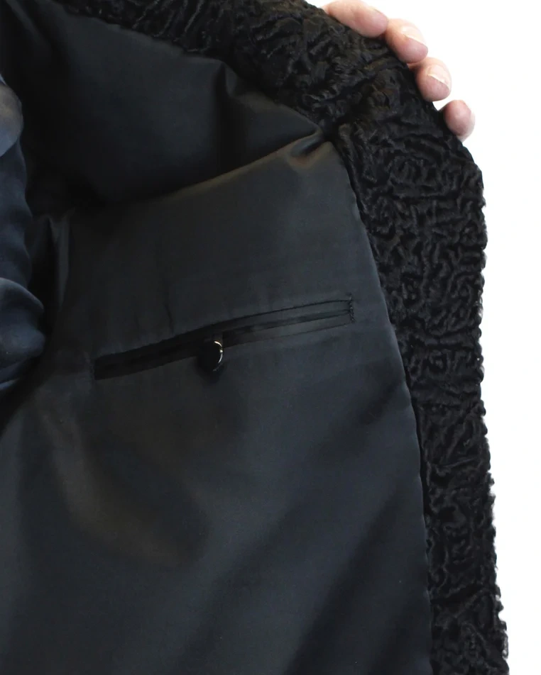 Amazing Men Randal Black Button Front Persian Lamb Fur Vintage Jacket On Sale