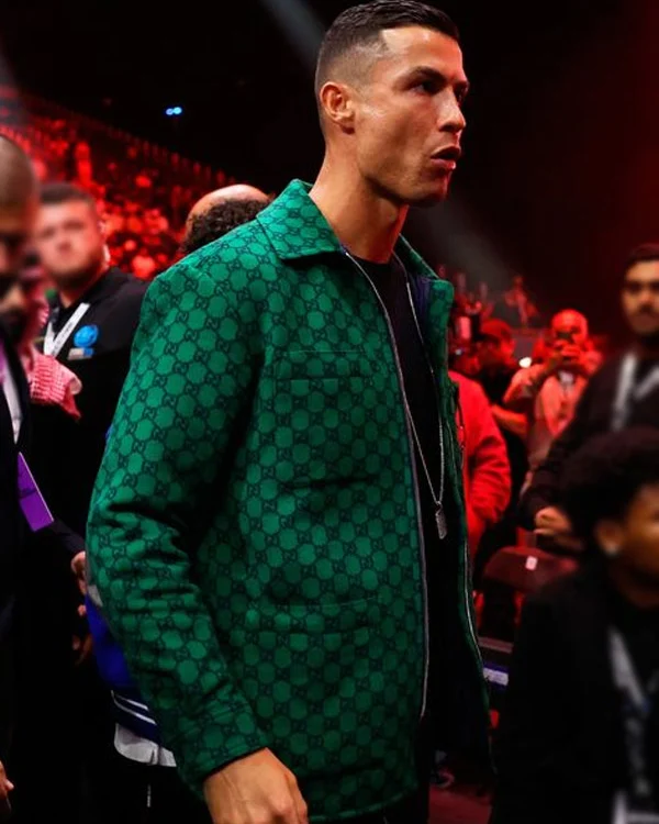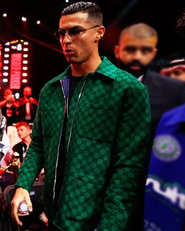 Portuguese Footballer Cristiano Ronaldo Reckoning Fight Night Green Polyster Jacket For Men