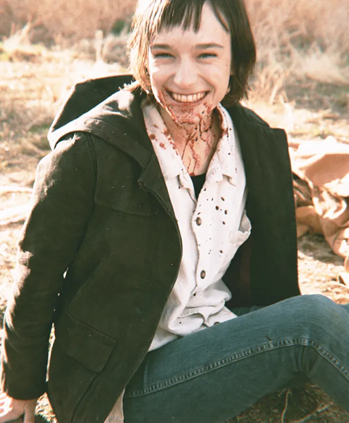 Gaia Brooks Movie Red Plague 2025 Daisy Black Hooded Coat
