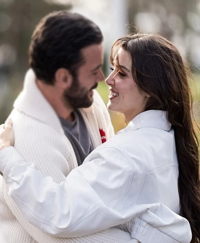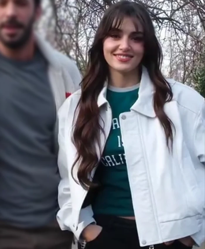 Hande Erçel TV-Series Reminder 2025 Günes White Leather Jacket