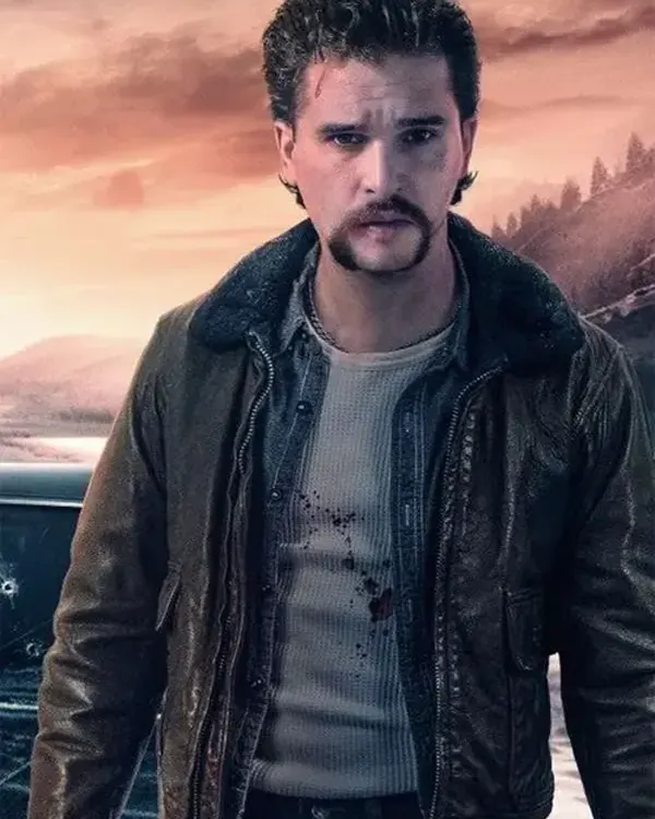 Kit Harington Blood for Dust 2024 Movie Ricky Black Shearling Leather Jacket On Sale
