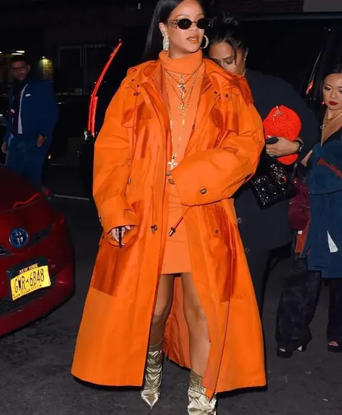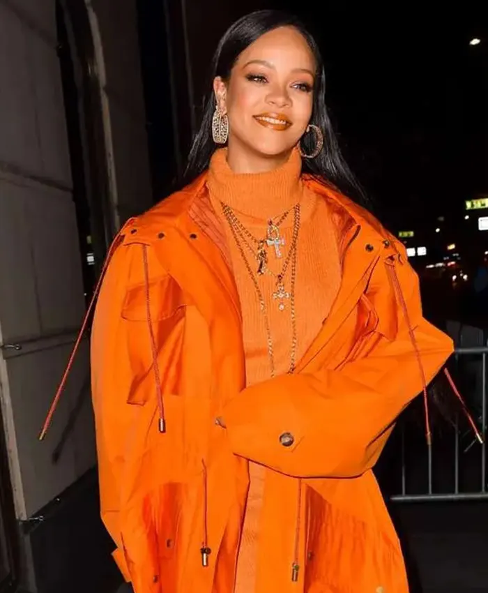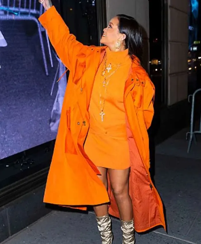 Rihanna Celebrity 2020 Bergdorf Goodman Orange Hooded Coat For Womens