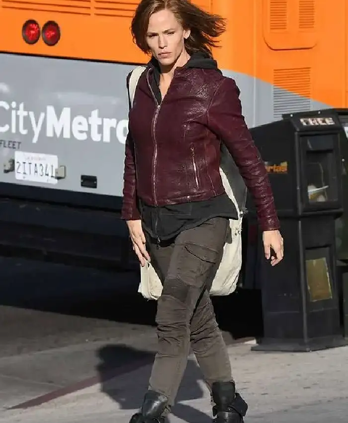 Jennifer Garner Riley North Peppermint 2018 Maroon Leather Jacket For Women