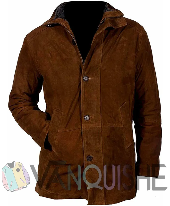 Robert Taylor Sheriff Walt Longmire Brown Suede Leather Coat For Men