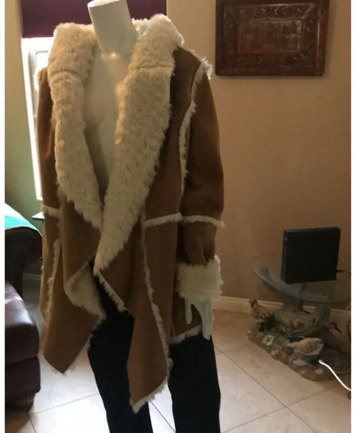 The women’s Robyn Brown Shearling Sheepskin Hooded Long Coat keeps you warm and stylish throughout winter. Well-constructed with premium-quality sheepskin and suede leather, it is soft, lasts long, and is warm enough. Sheepskin has been the only choice for warmth by mankind, which is natural and very strong, as well as a perfect solution for freezing environments.