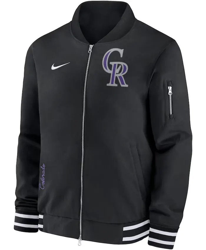 Baseball Team Colorado Rockies Black Full-Zipper Fleece Bomber Jacket