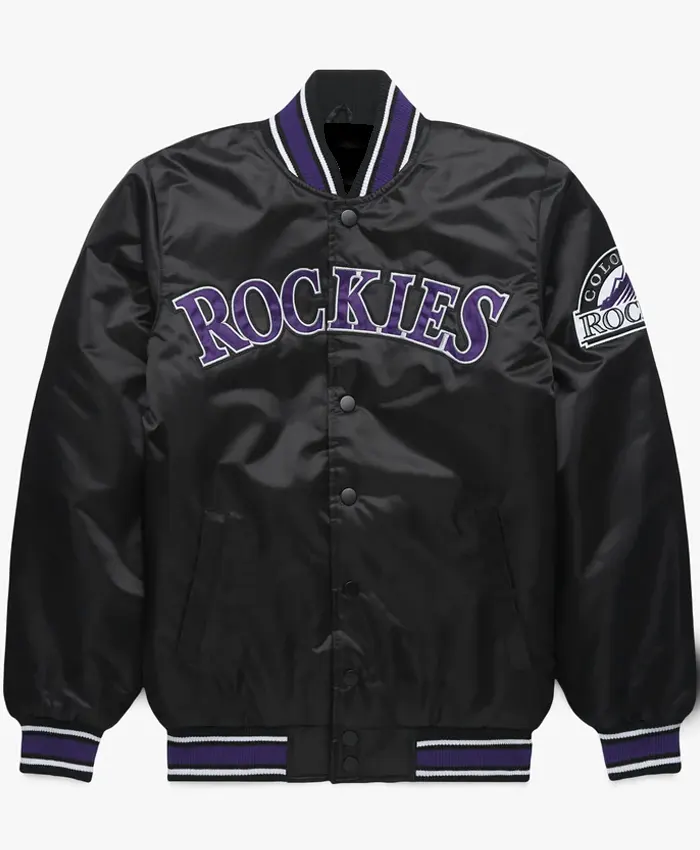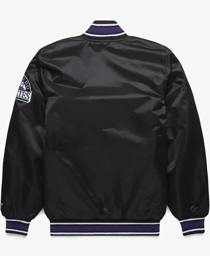 Purchase Colorado Rockies Black Starter Full-Snap Satin Bomber Jacket
