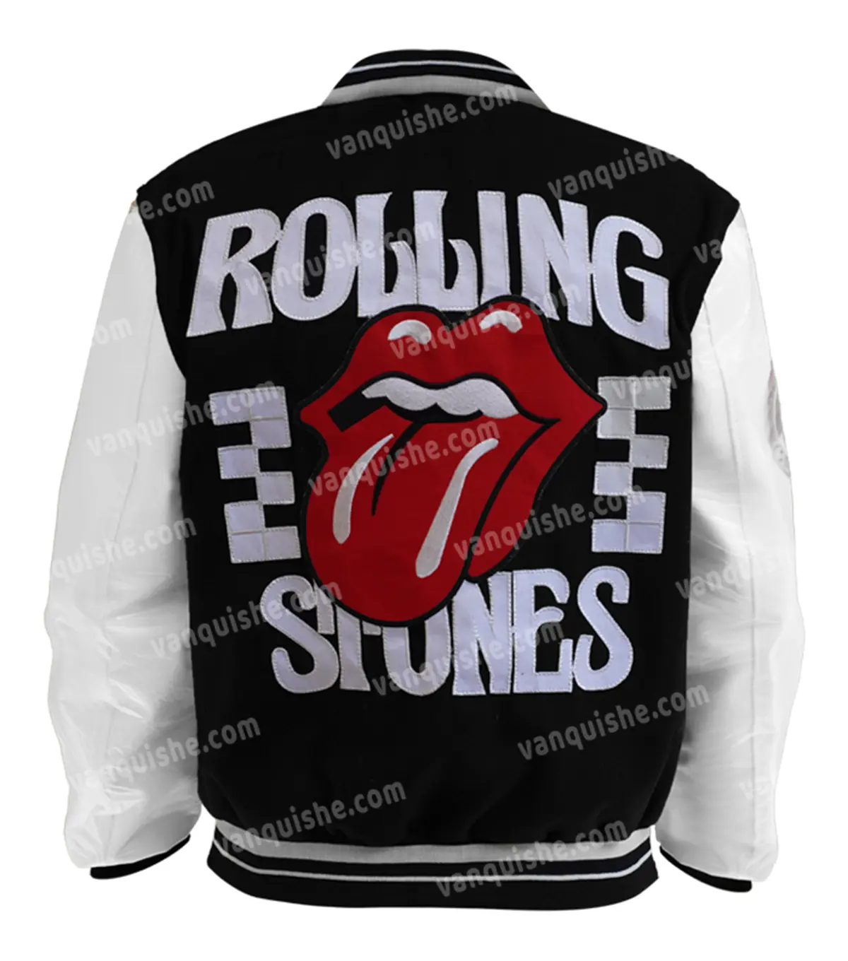 Shop Rolling Stones Black and White Varsity Letterman Jacket on Sale