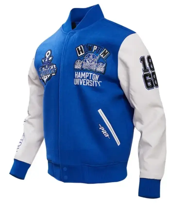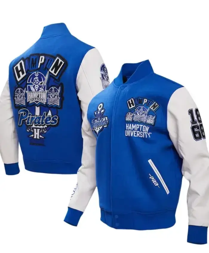 Hampton Pirates Homecoming Series 2025 Team Fan Look Royal Blue Wool Leather Varsity Jacket For Mens