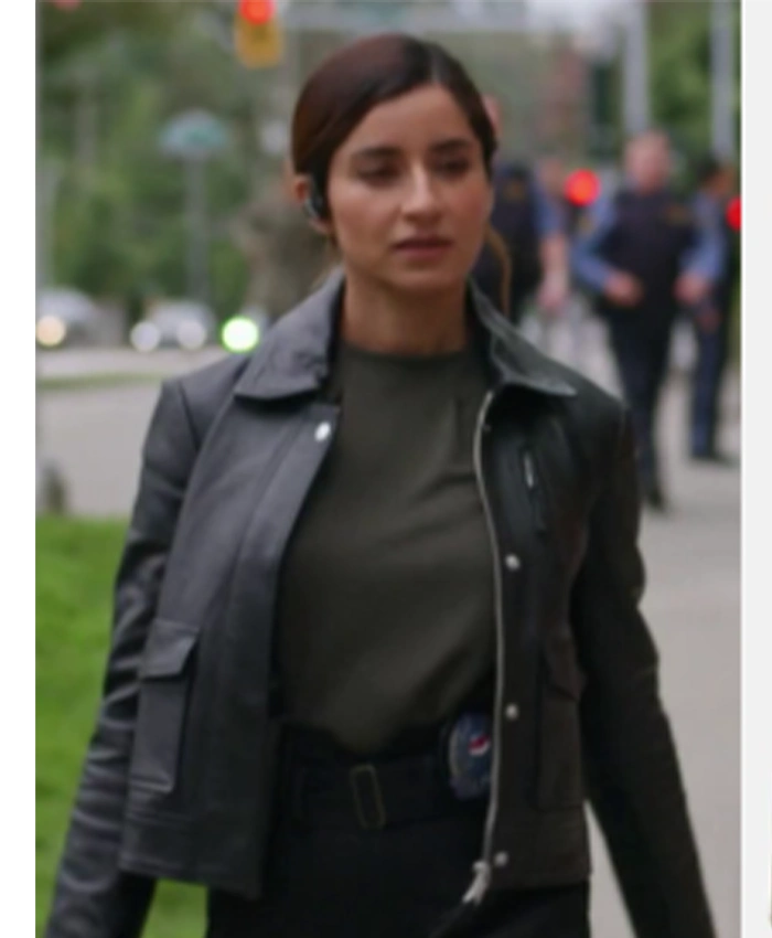 Sabrina Sohal TV Series Allegiance 2024 Supinder Wraich Black Leather Jacket