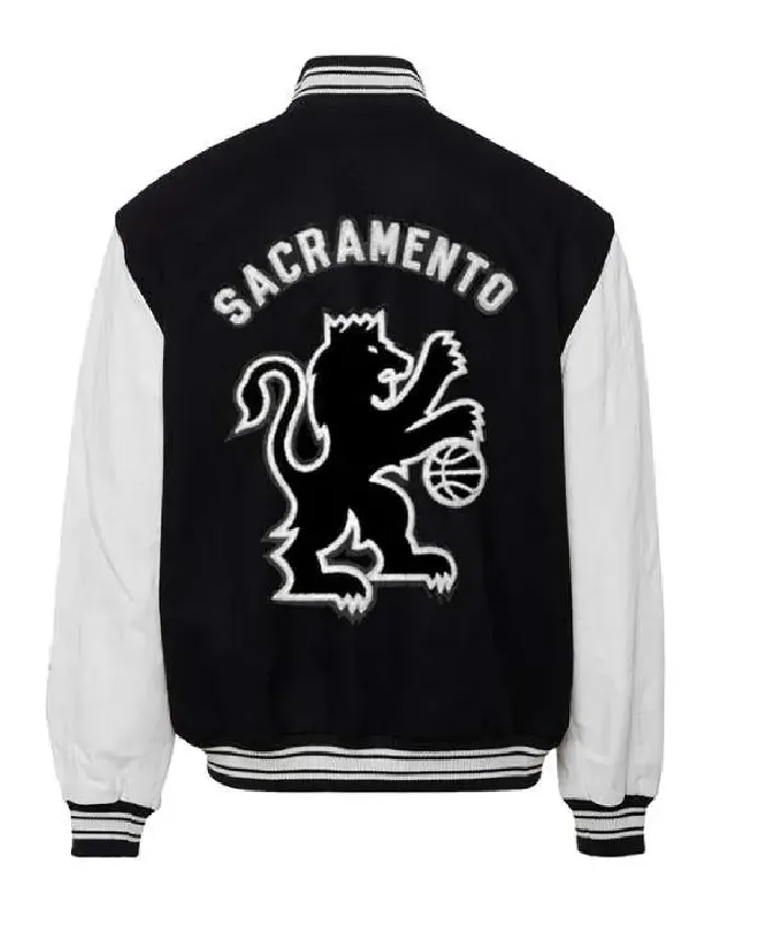 Sacramento Kings Black Wool and White Leather Jacket For Men and Women