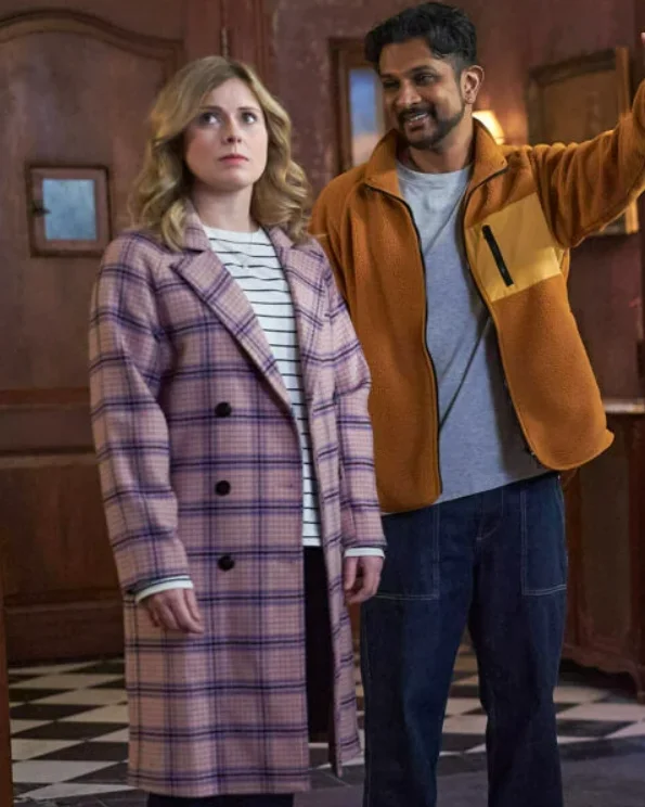 Rose McIver TV Series Ghosts US Season 03 Sam Pink Wool Plaid Long Coat