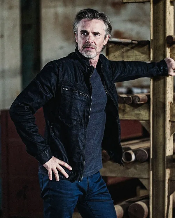 Sebastian James 72 Hours Movie 2024 Sam Trammell Black Leather Jacket