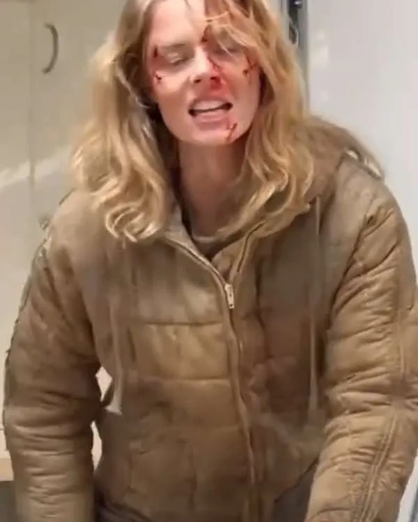 Movie Azrael 2024 Samara Weaving Green Hooded Puffer Bomber Jacket