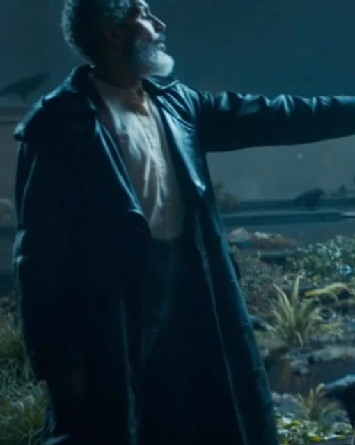 Sami Bouajila Kronos Movie The Crow 2024 Black PU Leather Trench Coat