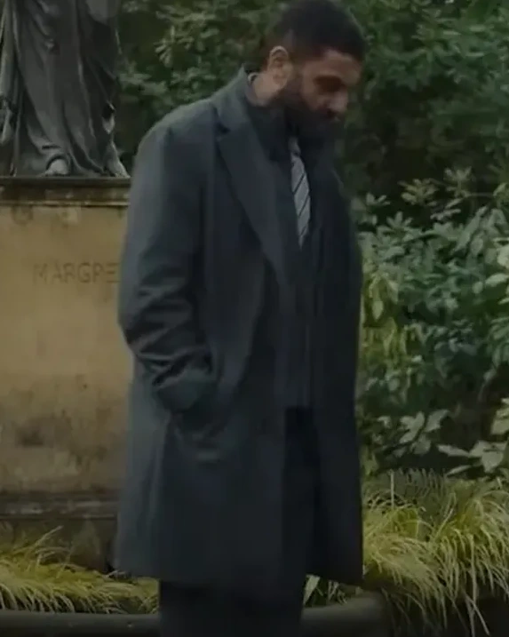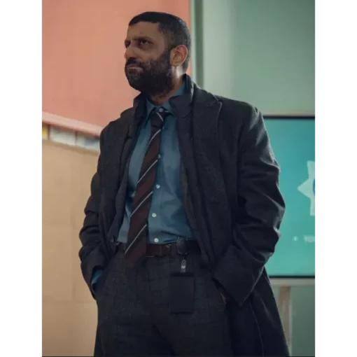 Adeel Akhtar Movie Fool Me Once 2024 Sami Kierce Grey Wool Coat