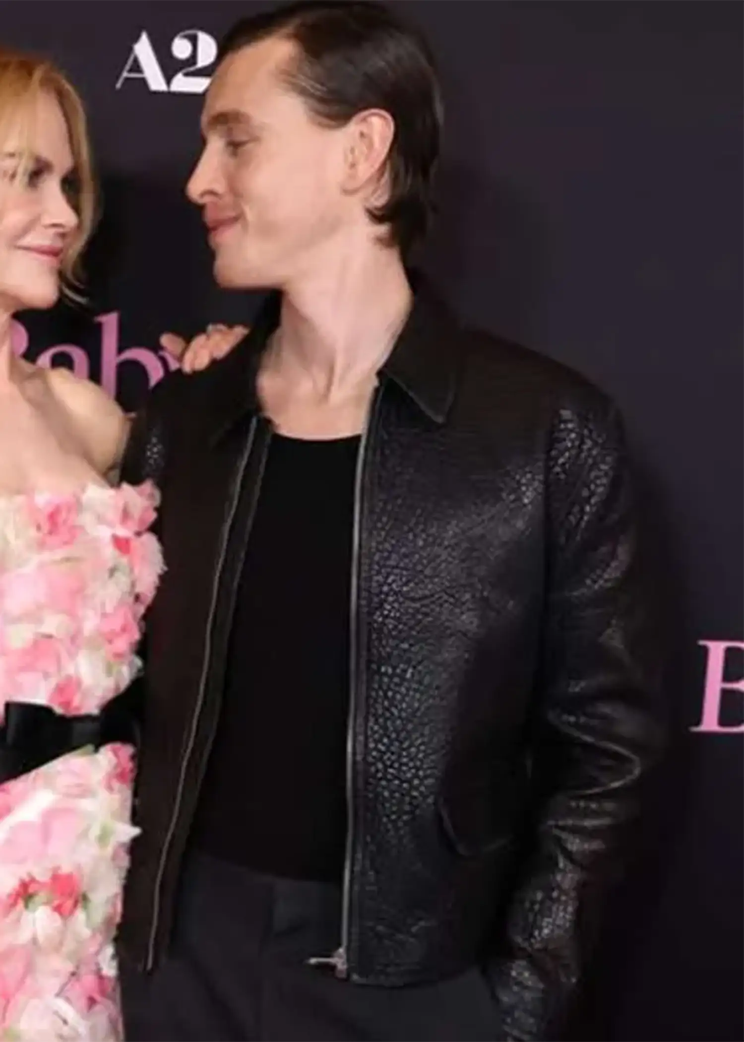 Shop Harris Dickinson Movie Babygirl 2024 Samuel Black Leather Jacket