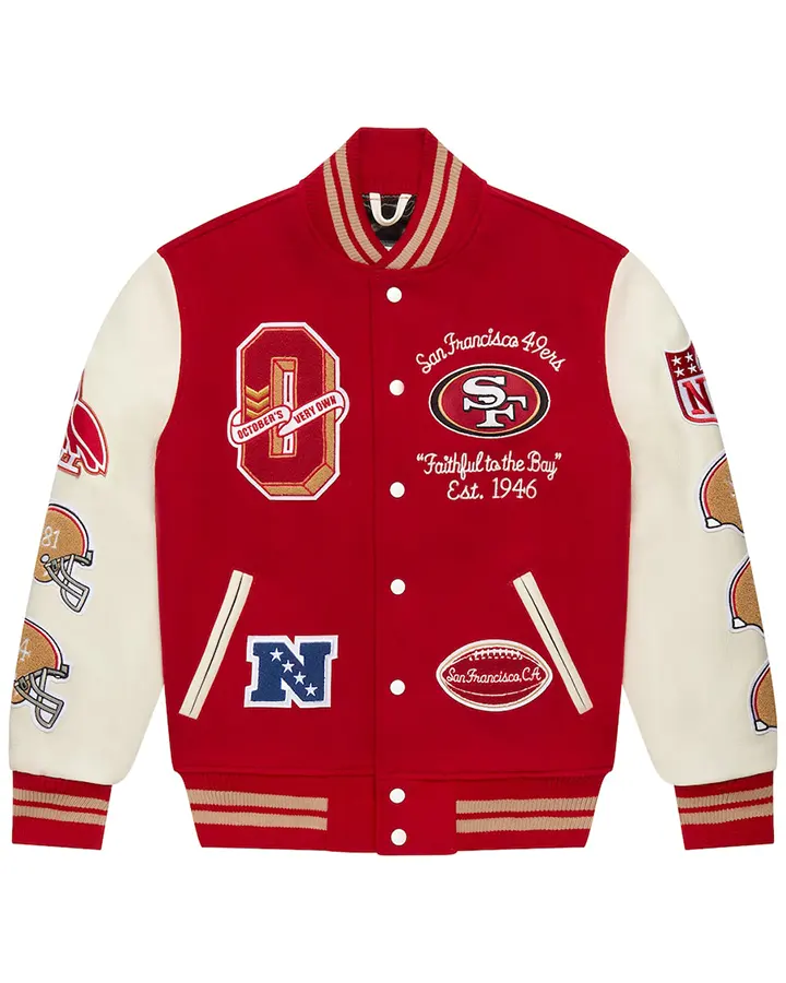 In essence, wearing this jacket is like wearing your heart on your sleeve—it’s a perfect blend of style and team spirit. As they say, “clothes make the man,” and this jacket certainly makes a statement. Whether you’re cheering from the stands or enjoying a casual outing, this piece will keep you looking sharp and feeling comfortable. Don’t miss out on this opportunity to elevate your wardrobe; after all, “the early bird catches the worm.” Grab your San Francisco 49ers OVO Wool Jacket today! Gear up for game day with the ultimate 49ers Jacket.