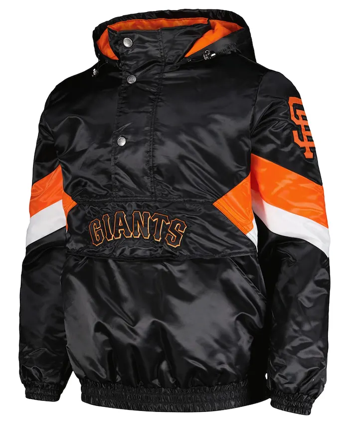 San Francisco Giants Black Satin Starter Bomber Jacket On Sale For Mens and Womens