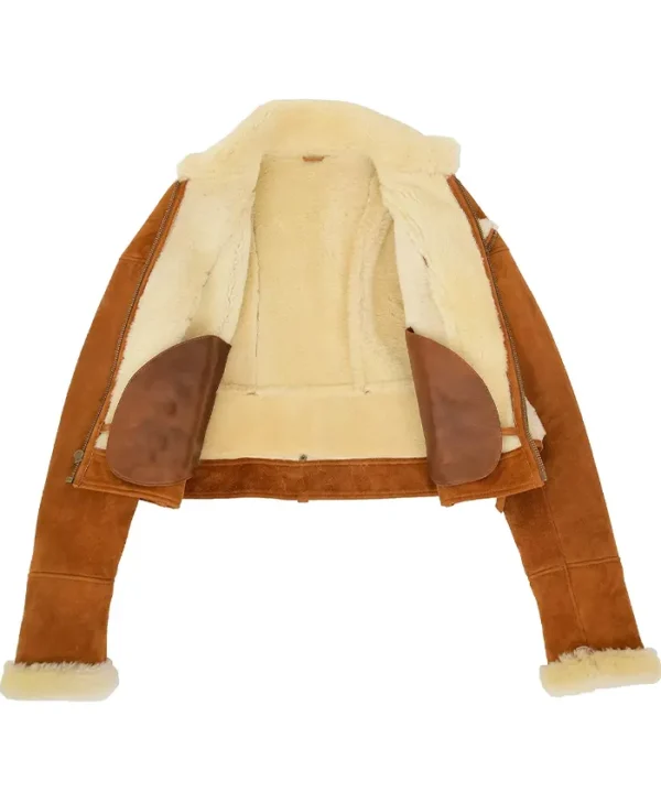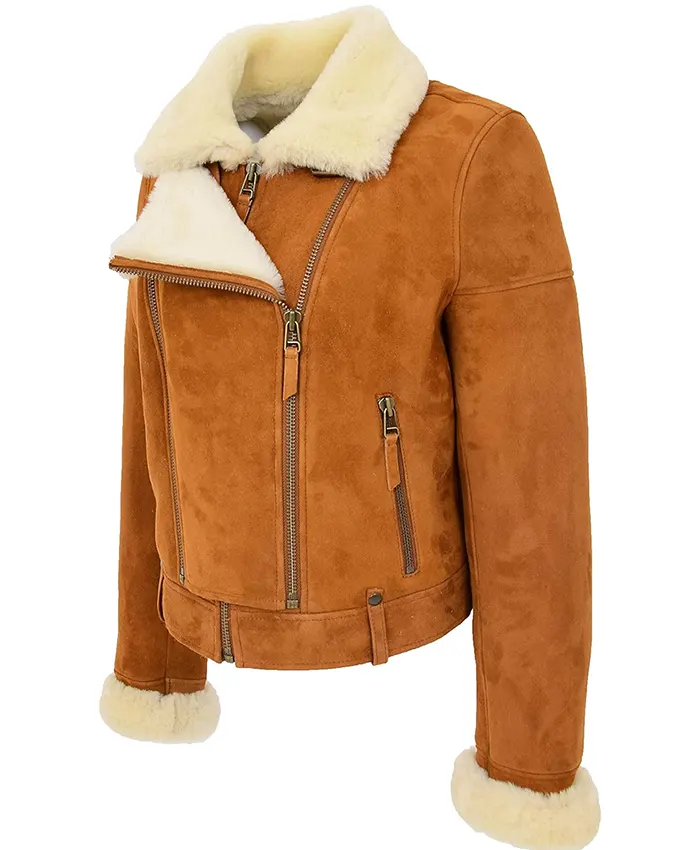 Sandra Women’s Shearling Aviator Pilot Zipper Closure Suede Leather Brown Biker Jacket On Sale