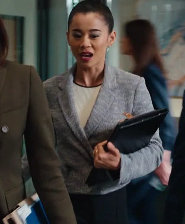 Leah Lewis TV Series Matlock Season 01 Sarah Franklin Grey Cropped Tweed Blazer