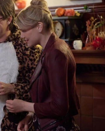 Nora 2024 Autumn at Apple Hill Movie Sarah Luby Burgundy Biker Jacket