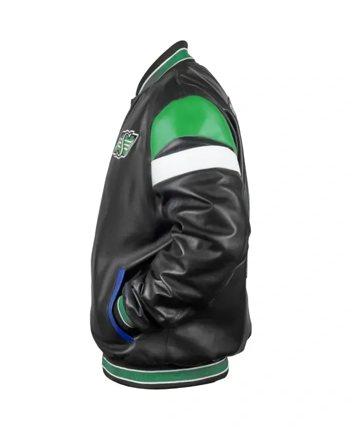 Add the Saskatchewan Roughriders Black Varsity Zip Leather Jacket to Your Cart Rep Your Team in Style