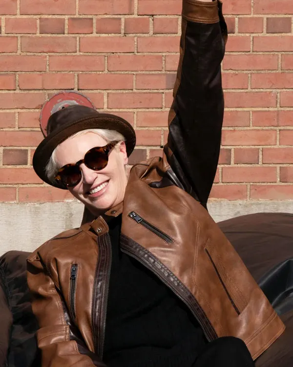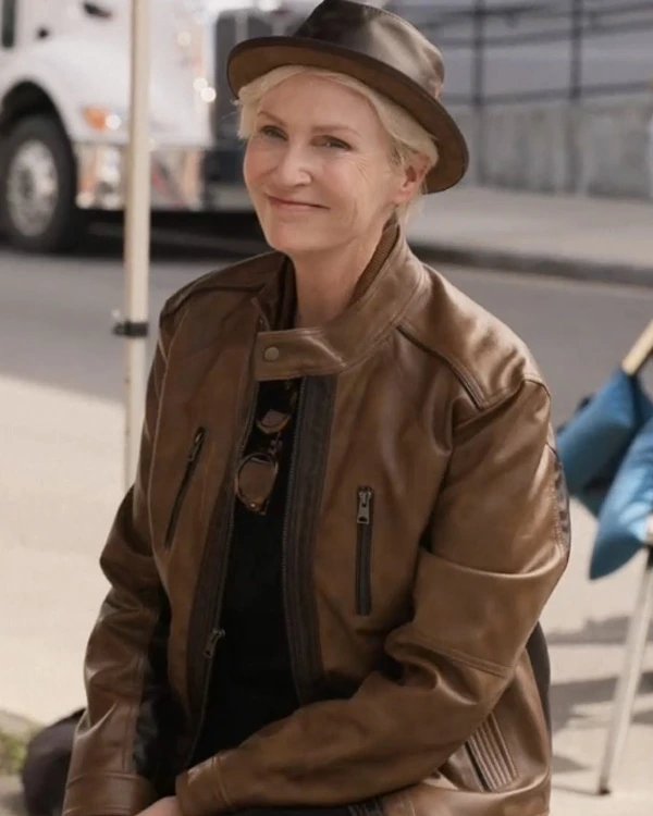 Jane Lynch TV Series Only Murders in the Building 2024 Sazz Pataki Brown Leather Jacket