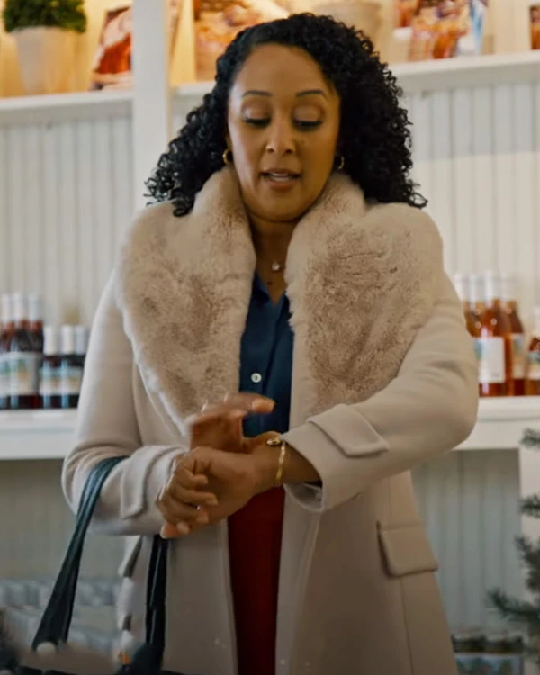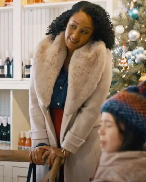 Tamera Mowry-Housley Movie Scouting For Christmas 2024 Angela White Shearling Trench Coat