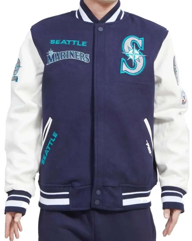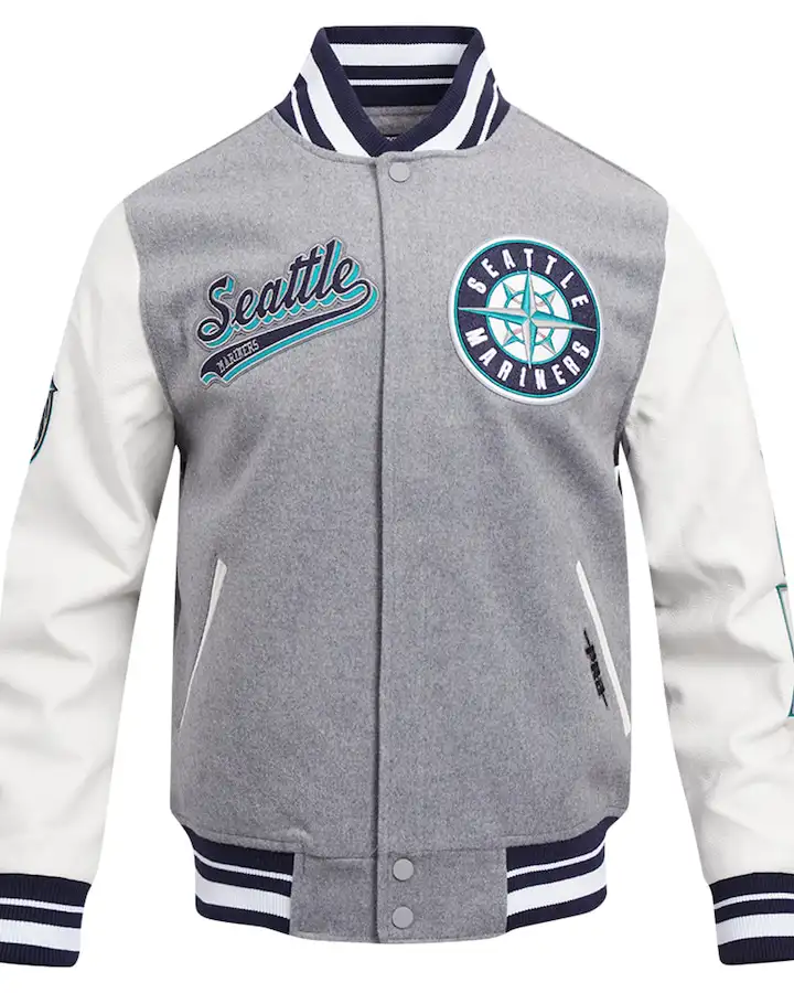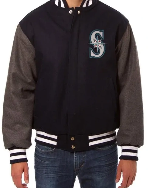 Seattle Mariners Two Tone Wool Varsity Bomber Jacket