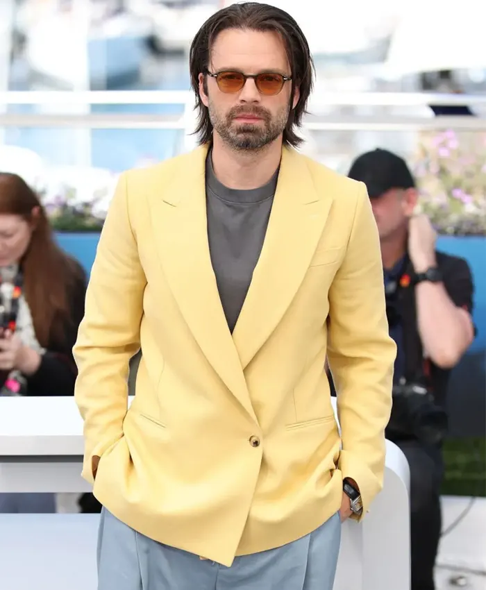 Sebastian Stan’s Cannes 2024 Single Button Yellow Blazer For Sale