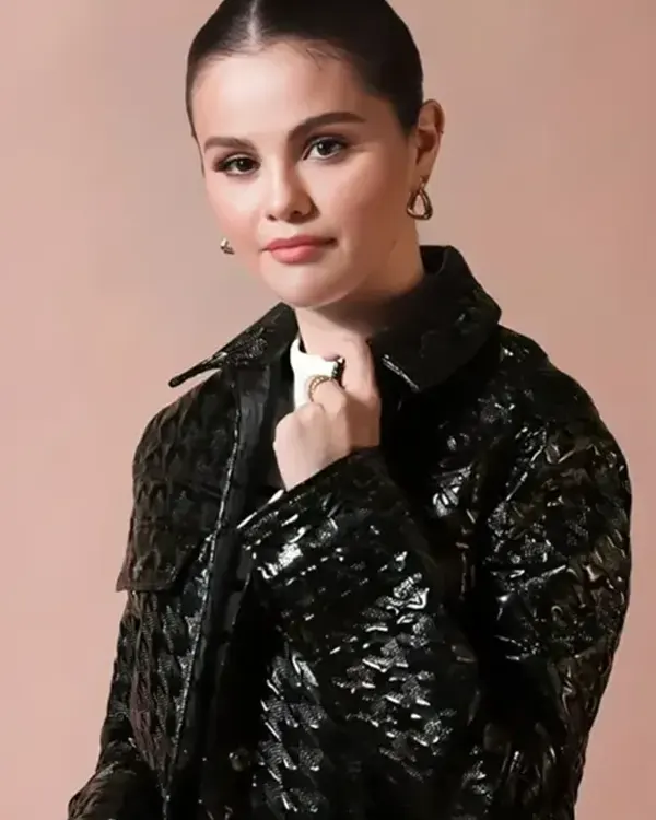 Be the first to review “Selena Gomez Houndstooth-Pattern Black Leather Jacket” Cancel reply