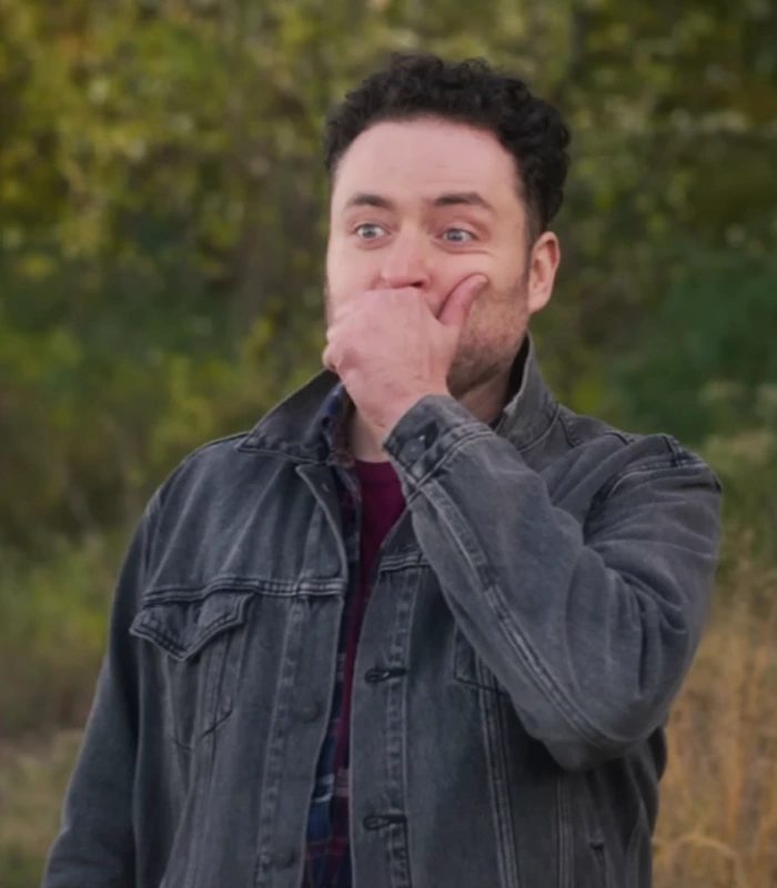 Erik Bloomquist Movie Self-Help 2025 Owen Grey Denim Jacket