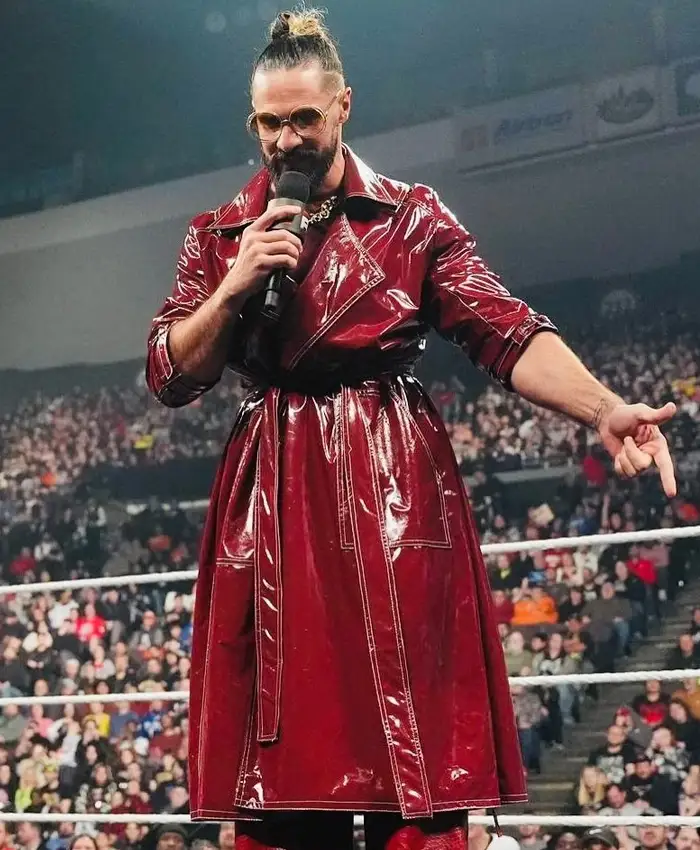 WWE star Seth Rollins has always been a style icon in the wrestling world. He is known for both his crazy fashion choices and how energetic he is in the ring. Fans know that every time he walks out on Monday Night RAW, they’re about to see something famous, both in terms of the show and the man himself. The Seth Rollins Monday Night RAW Red Trench Coat became a fan favorite right away and is one of his most talked-about outfits. This outfit exudes power, charm, and confidence, all of which are big parts of Seth’s personality.