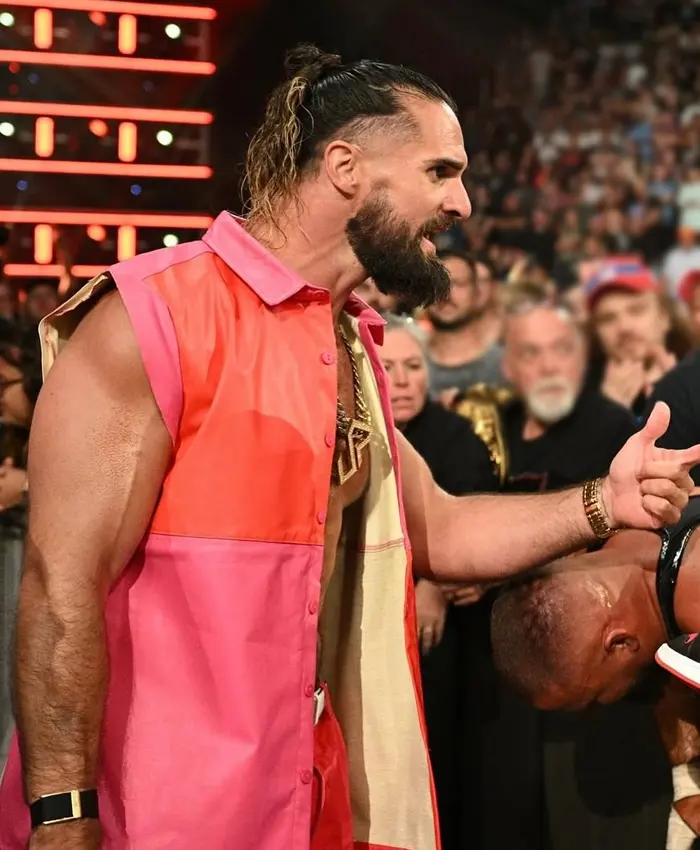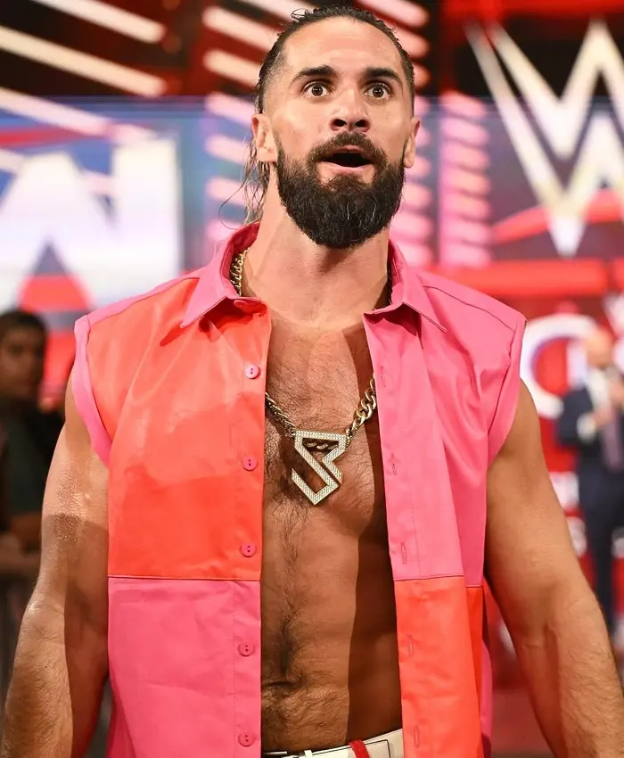 Seth Rollins WWE Raw 2025 Pink Leather Vest