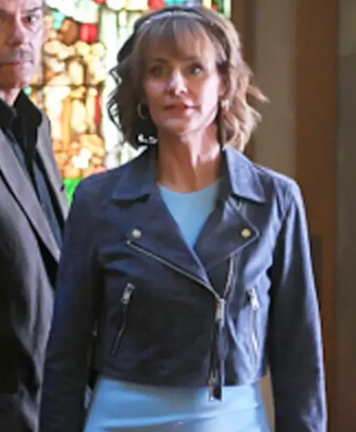 Sharon Leone Fire Country S02 Grey Cropped Biker Suede Jacket