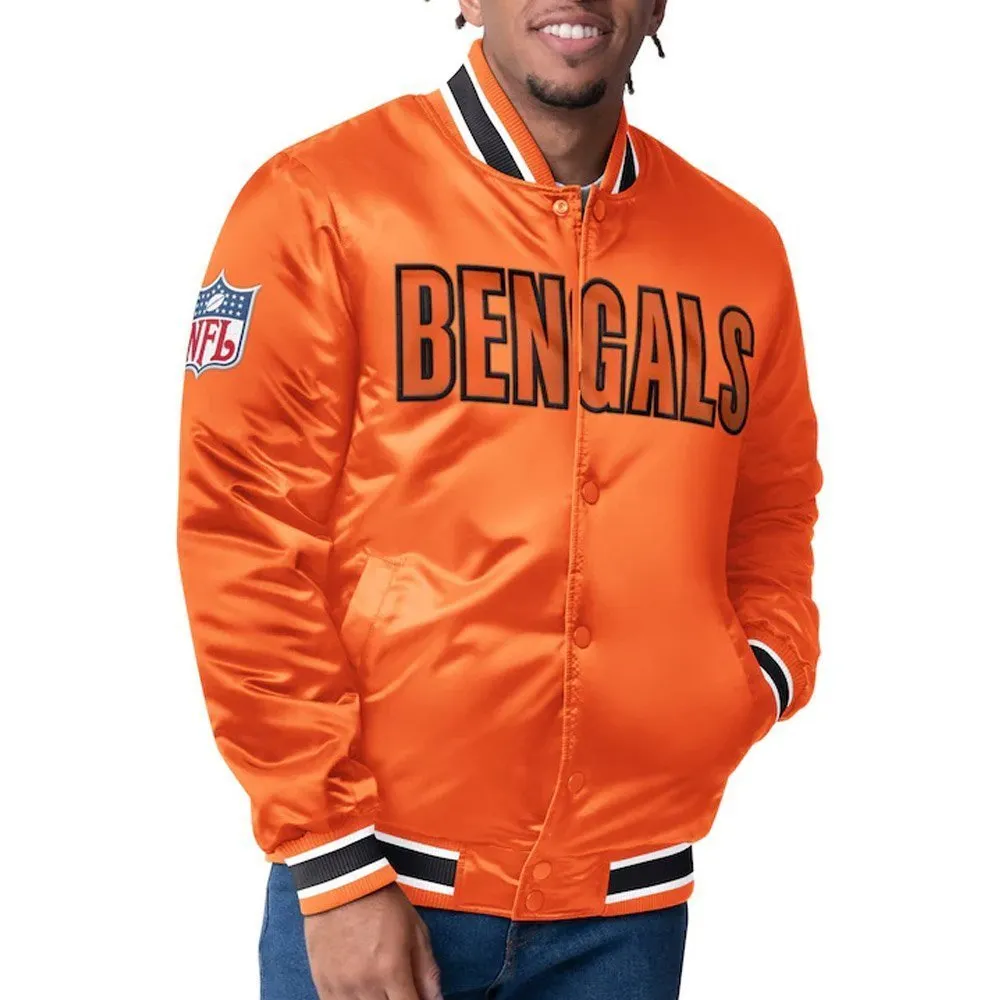 Buy Shelton Cincinnati Bengals 49ers Black And Orange Satin Button Jacket For Sale