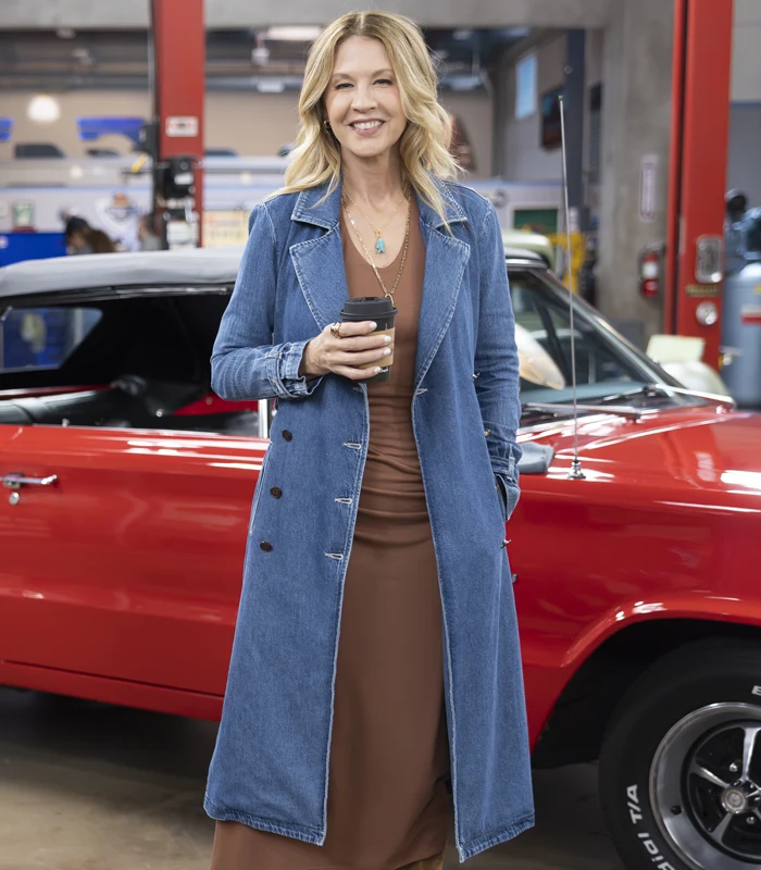 Jenna Elfman TV-Series Shifting Gears 2025 Eve Drake Blue Denim Coat