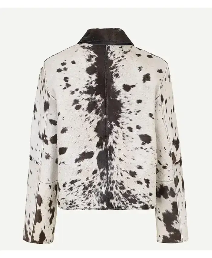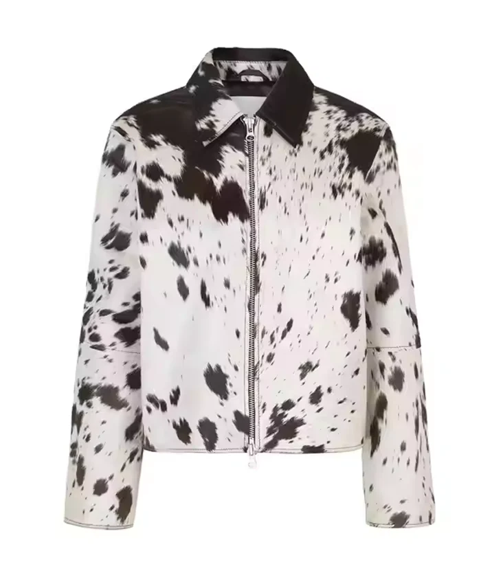 Drop Down Collar Brown And White Fur Leather Cowhide Jacket Unisex