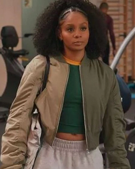 Geffri Maya All American Homecoming Season 02 Episode 11 Simone Hicks Green Bomber Cropped Jacket