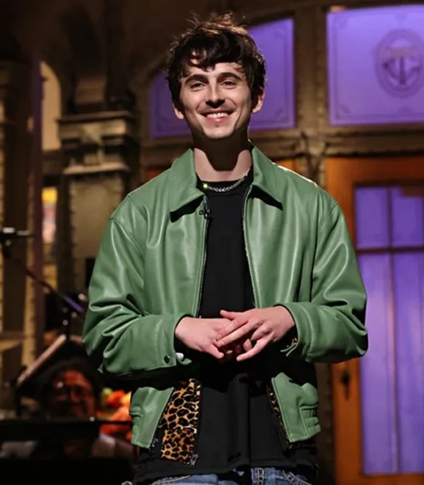 Timothée Chalamet TV-Series Saturday Night Live 2025 Green Leather Jacket