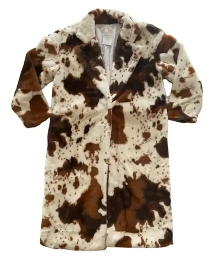 Brown And White Cowhide Fur Long Coat For Mens And Womens